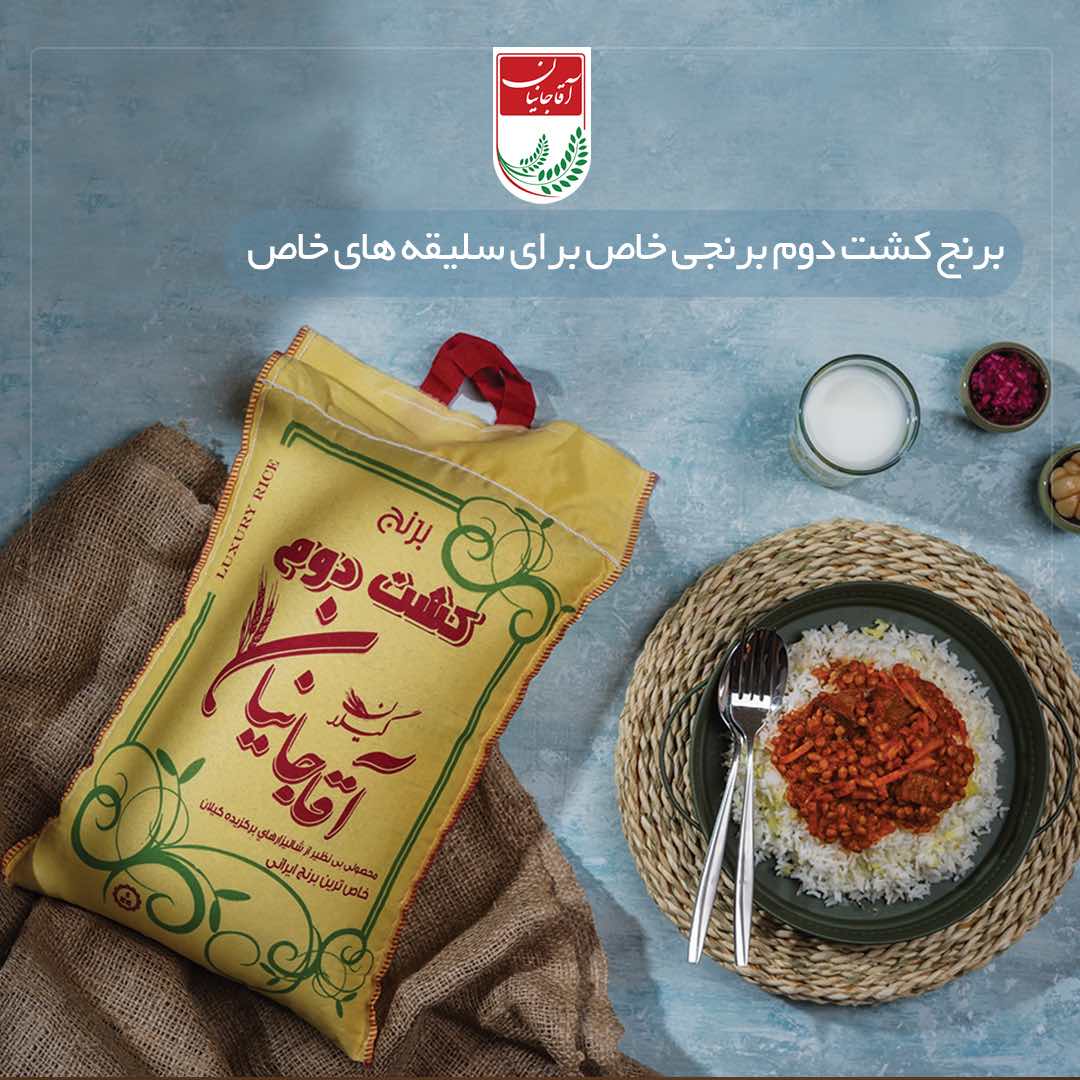 برنج کشت دوم آقاجانیان یکی از مرغوبترین نمونههای برنج ایرانی است که از شالیزارهای برگزیده گیلان برداشت میشود. این محصول با دانههای کامل، سفید و خالص عرضه میشود و نسبت به سایر نمونههای موجود در بازار، از کیفیت بالاتری برخوردار است. از مهمترین ویژگیهای برنج کشت دوم میتوان به عطر و طعم بینظیر آن، پخت مناسب، عدم خردشدگی و قدرت بالا در جذب عطر غذا اشاره کرد. این برنج بهخصوص برای کسانی که به طعم اصیل برنج ایرانی اهمیت میدهند، انتخابی بیرقیب محسوب میشود.