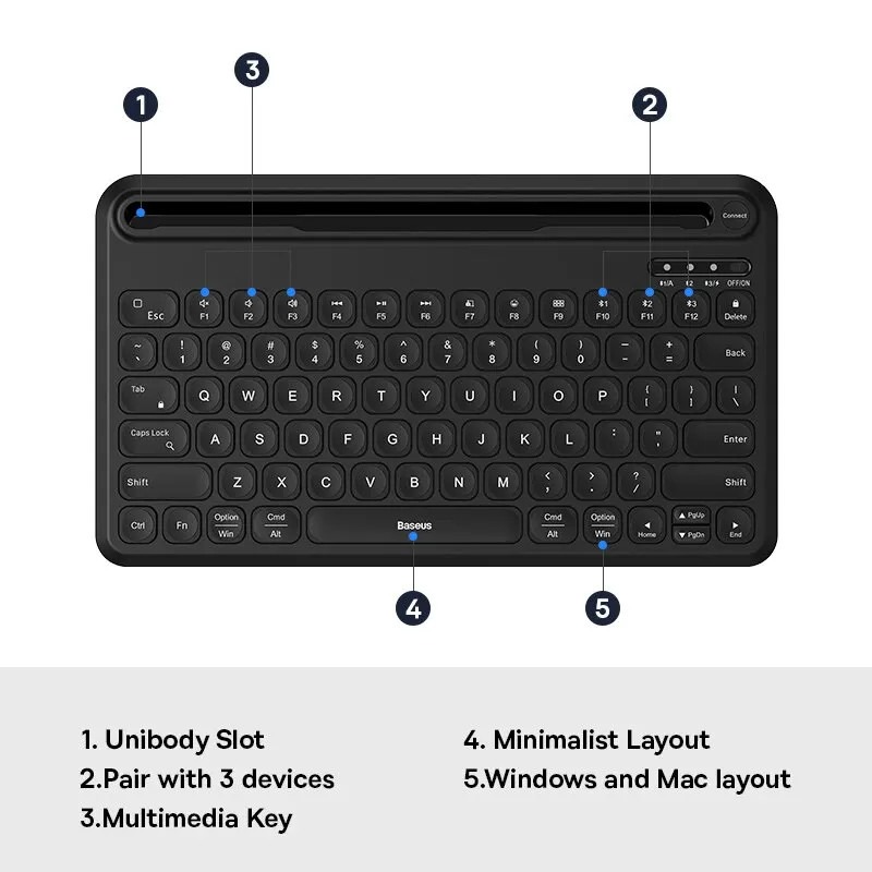 اگر شما هم از جمله افرادی هستید که به طور مداوم با کامپیوتر یا لپتاپ کار میکنید، قطعاً به یک کیبورد بلوتوثی سبک و قابل حمل نیاز خواهید داشت. کیبورد باسئوس مدل BS-K02 از شرکت بیسوس نه تنها قابلیت اتصال بیسیم دارد، بلکه میتواند به طور همزمان با سه دستگاه متصل شود. این ویژگیها باعث میشود که این کیبورد برای استفاده در محیطهای مختلف، از جمله خانه و محل کار، بسیار مناسب باشد.