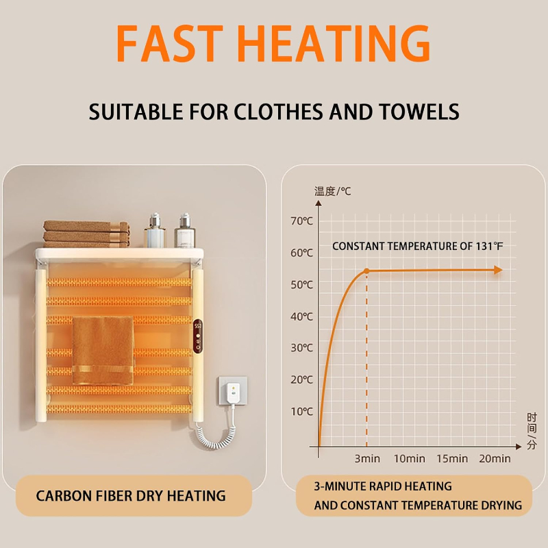 خشک کردن حولهها و لباسها: این حولهخشککن بهترین گزینه برای خشک کردن سریع و راحت حولهها و لباسهای حمام است.