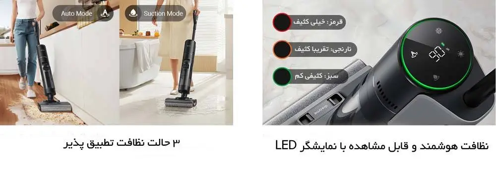 دارای نمایشگر دیجیتالی با نمایش اطلاعات باتری و وضعیت نظافت