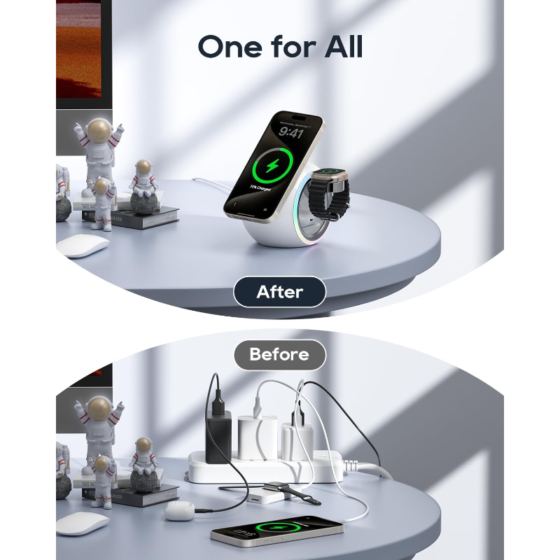 با این شارژر میتوانید به صورت همزمان گوشی، ایرپاد و ساعت هوشمند خود را شارژ کنید، بدون نیاز به چندین کابل و شارژر.