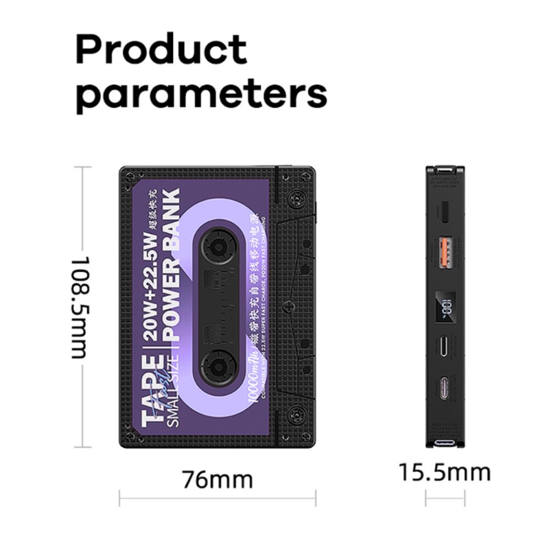 ظاهری نوستالژیک و جذاب: طراحی کاست کلاسیک، این محصول را از سایر پاوربانکها متمایز میکند.