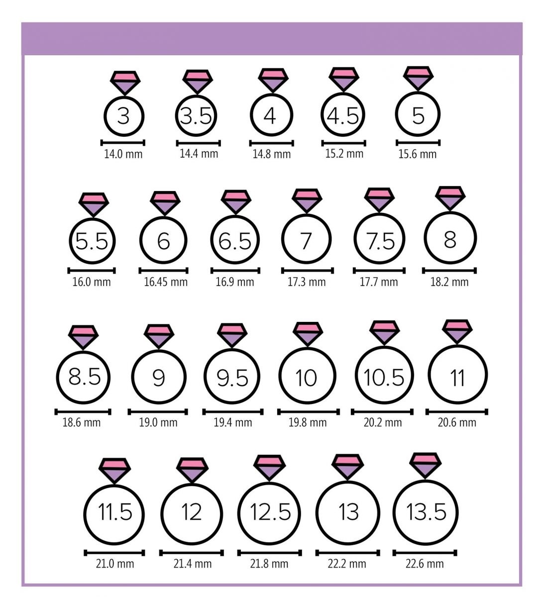 قطر حلقه هوشمند بر اساس سایز استاندارد