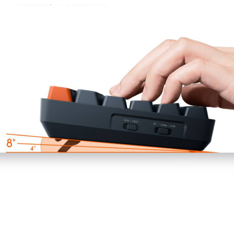 طراحی ارگونومیک و کاربرپسند: این کیبورد با سه زاویه شیب قابل تنظیم (2، 8 و 14 درجه) طراحی شده تا فشار روی مچ دست را کاهش داده و تجربه تایپ راحتی را ارائه دهد.