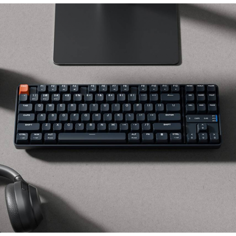 یکی از مهمترین نقاط قوت این کیبورد، قابلیت اتصال سهگانه آن است: از طریق کابل USB-C به USB-A، اتصال بیسیم 2.4 گیگاهرتزی با گیرنده اختصاصی و اتصال بلوتوث با پشتیبانی از نسخههای BT3.0 و BLE5.0. همچنین حافظه داخلی آن امکان ذخیره تنظیمات و اطلاعات تا سه دستگاه بلوتوثی را فراهم کرده است. این ویژگی به کاربران اجازه میدهد بهراحتی میان دستگاههای مختلف جابهجا شوند بدون نیاز به تنظیمات مجدد.